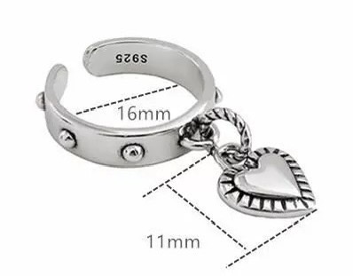 シルバーのリングに、小さなハートチャームがゆらゆらと揺れるデザイン。